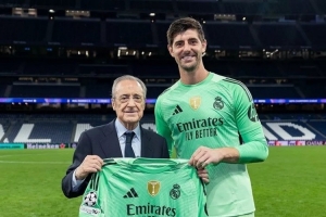 庫(kù)爾圖瓦達(dá)成皇馬生涯出戰(zhàn)300場(chǎng)里程碑,賽后獲贈(zèng)紀(jì)念球衣
