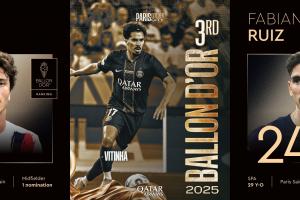 體育資訊09月23日訊 2025年金球獎頒獎典禮凌晨舉行,巴黎成為本屆金球頒獎的最大贏家,他們有8位球員入圍提名,登貝萊最終捧起金球獎杯。