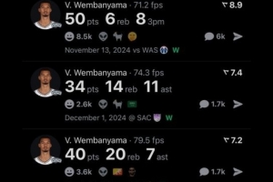 50分、40+20+7、揭幕戰40+15!美媒曬文班離譜數據:他才21歲