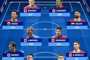 體育資訊10月25日訊 《轉會市場》列出了各個位置的英超歷史參與進球最多陣容,薩拉赫、阿諾德連線右路。