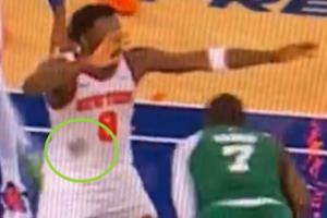??發際線粉蹭掉了!杰倫-布朗的頭一通亂蹭 OG球衣一大團黑