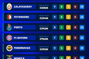 本賽季歐洲前十聯賽8隊保持不敗,五大聯賽僅剩拜仁、亞特蘭大