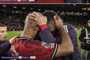 蜂王與狼王!賽后曼聯兩大新援姆伯莫和庫尼亞緊緊擁抱慶祝勝利