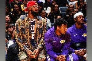 體育資訊10月26日訊 昨日湖人主場迎戰森林狼,詹姆斯身穿小兒子布萊斯在亞利桑那大學的球衣到場觀賽。