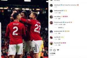 盧克-肖也在賽后通過社媒曬出和隊友的相擁慶祝照,并配文:“讓我們延續當前的勢頭!”