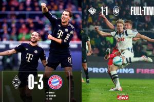 體育資訊10月26日訊 周末比賽日,德甲的拜仁3-0門興,意甲的亞特蘭大1-1克雷莫內塞,兩隊繼續保持不敗,仍是五大聯賽唯2不敗的球隊。