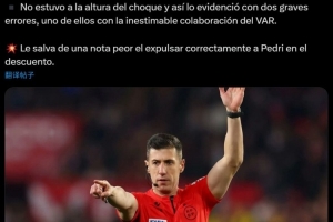 西媒Archivo VAR在賽后為本場比賽主裁判格拉多打分:“災難級表現,2.5分。”