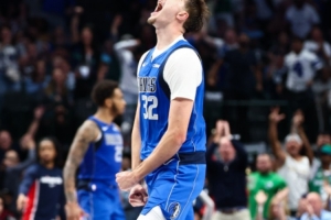 體育資訊10月27日訊 NBA常規賽,獨行俠139-129擊敗猛龍,比賽中獨行俠球員弗拉格隔扣猛龍球員桑德羅-馬穆凱拉什維利震驚全場。