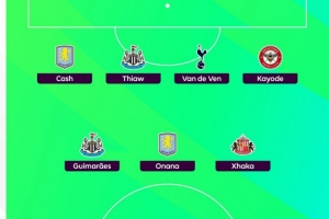 后衛(wèi):卡什(阿斯頓維拉)、佳夫(紐卡斯?fàn)枺⒎兜路遥岽蹋⑦~克爾-卡約德(布倫特福德)