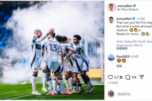 體育資訊10月28日訊 美職聯(lián)季后賽第一輪首場比賽,穆勒點射破門,溫哥華白浪主場3-0擊敗達拉斯FC,占據(jù)晉級先機。