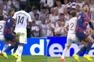 弗里克的球隊(duì)整場控球占優(yōu),但踢法很容易預(yù)測、缺乏銳度。只有費(fèi)爾明和拉什福德偶爾能突破皇馬防線。佩德里被重點(diǎn)盯防,亞馬爾無法正面拿球,費(fèi)蘭觸球機(jī)會(huì)少且很難獲得舒服的射門位置,全場僅兩次向庫爾圖瓦射門。上半場最佳進(jìn)攻是費(fèi)爾明的進(jìn)球,佩德里斷球后迅速轉(zhuǎn)化為絕對機(jī)會(huì)。稍后,費(fèi)爾明頭球攻門,又被赫伊森在門線救險(xiǎn)。
