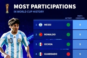 再戰一屆?德轉列已參加5屆世界杯球員:現役僅梅西、C羅、奧喬亞