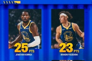 四面開花!勇士曬庫明加&波杰&巴特勒&穆迪四人同場20+得分海報!