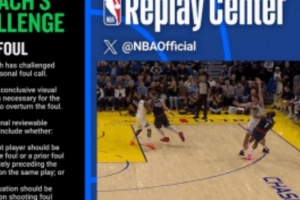 哈登造波斯特三分犯規 勇士果斷選擇挑戰并成功 改為中圈爭球