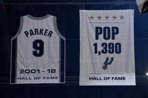 這面旗幟的每一處細節(jié),都是對傳奇的精準注解。白色底紋上,五顆金色星星對應著2003至2014年間的五座總冠軍獎杯,底部“HALL OF FAME(名人堂)”標識銘記著他2023年的榮耀加冕,而核心的“1390”字樣,則是波波維奇執(zhí)教的豐碑。數據不會說謊:2214場執(zhí)教、1390場勝利、62.8%勝率、22個賽季帶隊闖進季后賽,季后賽總勝場達到170場,5次總冠軍,3次獲得年度最佳教練。但比起數字,更動人的是致敬方式——沒有盛大儀式,恰如波波維奇本人,永遠將聚光燈讓給團隊。