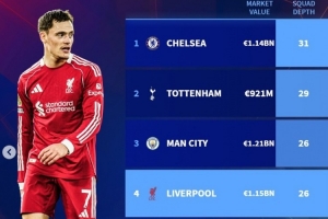 體育資訊10月30日訊 利物浦在本輪聯(lián)賽杯做出大輪換最終主場0-3完敗水晶宮,斯洛特在賽后抱怨球隊人手不足。《轉(zhuǎn)會市場》則統(tǒng)計了BIG6的陣容深度情況。