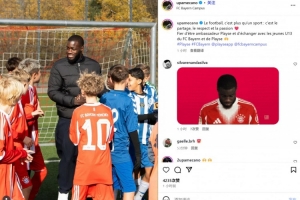 于帕也在今日現身拜仁U13青訓營和小球員們進行溝通交流,他也曬出自己的互動照,并配文:“足球不僅僅是一項運動:它還關乎分享、尊重和激情??很榮幸成為Playse品牌大使,并與拜仁慕尼黑U13球員和Playse攜手共進。”