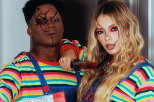 ??恩德里克與妻子曬萬圣節cos,扮演鬼娃回魂恐怖公仔