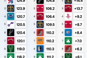 球隊進攻&防守效率及凈效率排名!火箭進攻效率第1 馬刺凈效率第1