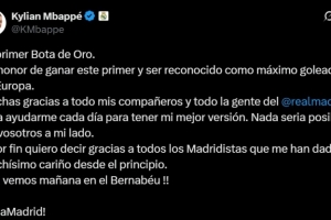 體育資訊10月31日訊 不久前,獲得歐洲金靴的皇馬前鋒姆巴佩更新社交媒體,感謝了隊友和球迷的支持。