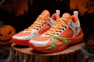 球鞋也采用了比較經典的和萬圣節相關的橙色作為主色調,鞋舌上也有萬圣節南瓜人元素刺繡。