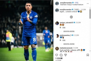 體育資訊11月2日訊 2025-26賽季英超第10輪焦點戰,切爾西1-0擊敗熱刺。賽后,藍軍中場恩佐在社交媒體曬圖,慶祝球隊獲勝。