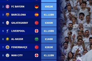 10月德轉俱樂部瀏覽量榜:皇馬、拜仁、巴薩前三,利雅得勝利第六