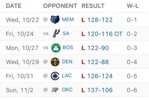 體育資訊11月3日訊 鵜鶘客場106-137慘敗雷霆,遭遇開季6連敗。