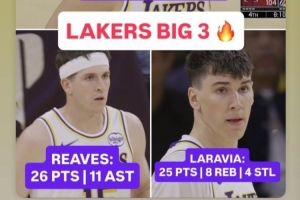 賽后,拉拉維亞轉發了湖人“三巨頭”的數據,東契奇29分11籃板10助攻,里夫斯26分11助攻,拉拉維亞25分8籃板4搶斷。