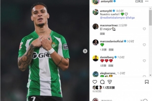 安東尼此役2射1傳,當(dāng)選全場(chǎng)最佳球員,賽后他在社交媒體上曬出比賽照片,慶祝球隊(duì)取勝,配文:“我們的夢(mèng)想!”