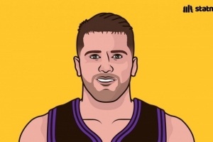 其中得分、籃板、助攻三項數據全部排在聯盟前十。其中得分第一、助攻第十、籃板第七。