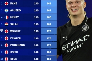體育資訊11月3日訊 德轉(zhuǎn)盤點了英超歷史達(dá)成百球最快用時榜,而哈蘭德107場98球十分有望創(chuàng)造新的紀(jì)錄,以下為具體榜單: