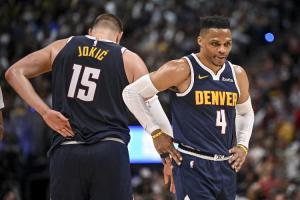 上賽季,威少為掘金出戰75場常規賽,場均上陣27.9分鐘可以貢獻13.3分4.9籃板6.1助攻1.4搶斷;季后賽,威少出場13次,場均登場24.1分鐘可以拿到11.7分3.7籃板2.6助攻。