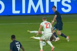 體育資訊11月05日訊 歐冠聯賽階段第4輪,巴黎對陣拜仁。44分鐘,基米希爭搶中倒地,隨后頭部被法比安踢到,裁判沒有表示。
