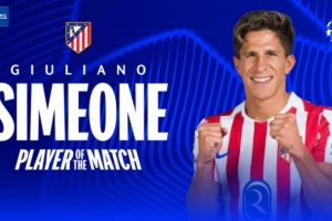 此役朱利亞諾-西蒙尼為馬競首發出戰,助攻阿爾瓦雷斯破門,他當選本場比賽歐冠官方全場最佳球員。