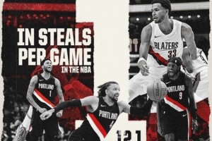 體育資訊11月5日訊 開拓者官方發布數據海報,球隊場均送出12.1次搶斷,排名聯盟第一。