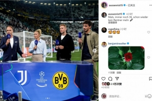 曾效力多特的德國足壇名宿胡梅爾斯參與了這場比賽的現(xiàn)場評述工作,退役不久的他在社交媒體上曬出照片,配文:“馬茨(胡梅爾斯),依然36歲,不再是退休人士了?!?/p>