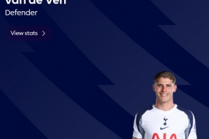 此役范德文為熱刺踢滿全場,這位中衛當選本場比賽最佳球員。