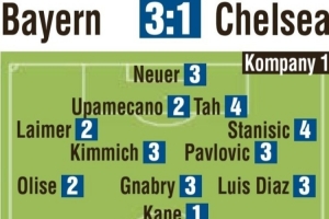 體育資訊9月18日訊 拜仁在本輪歐冠焦點戰3-1力克切爾西,《圖片報》在賽后為兩隊球員評分,凱恩獲評最佳1分。