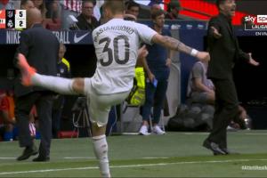 終場前,馬斯坦托諾被斷球后反搶拉人犯規(guī),往回走的馬斯坦托諾被場外來球砸中,隨后他一腳爆射將球踢回場邊,引發(fā)馬競球員和球迷的不滿,雙方在最后時刻爆發(fā)沖突,主裁判也當即向馬斯坦托諾出示黃牌予以警告。