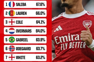 阿森納球員英超勝率榜:薩利巴居首,加布里埃爾、厄德高在列