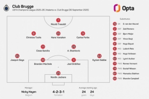 24歲24天!布魯日排出歐冠歷史平均年齡最年輕首發陣容