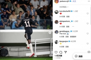 杰克遜曬出了自己的慶祝照。在本場(chǎng)比賽中,杰克遜代表拜仁首發(fā)出場(chǎng)并踢滿全場(chǎng),并在31分鐘接奧利塞助攻完成破門,迎來加盟拜仁后的首粒進(jìn)球。