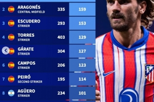 馬競隊史射手榜:格列茲曼200球居首,托雷斯、阿圭羅在列