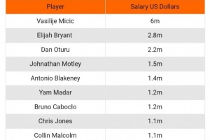 隊(duì)中有9人年薪超百萬(wàn)美元,而最低的三位球員年薪僅12-15萬(wàn)美元之間。