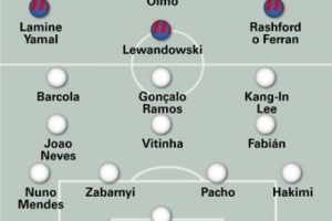 今晚的挑戰可能更為艱巨,因為傷病潮正侵襲著巴黎。盡管他們是法甲領頭羊,但此前已敗給馬賽。恩里克幾周前就知道登貝萊和杜埃無法沖擊巴薩防線,并一直在打磨B計劃,但克瓦拉茨赫利亞在最后時刻也加入了傷病名單。在今年歐冠決賽中摧毀國際米蘭的首發攻擊線將無法在巴塞羅那出戰,馬爾基尼奧斯也無法坐鎮后防,而中場方面維蒂尼亞、法比安和若奧-內維斯也只是剛剛夠用。巴爾科拉、貢薩洛-拉莫斯和李剛仁可能組成鋒線,但這并不意味著能低估巴黎,他們此前已經以4-0大勝亞特蘭大開啟了衛冕征程。