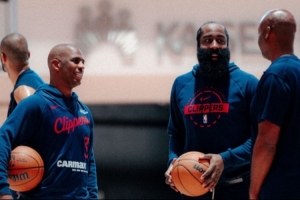 體育資訊10月1日訊 今天,快船官方曬出了球隊訓練營首日的照片。其中,哈登和保羅同框亮相。
