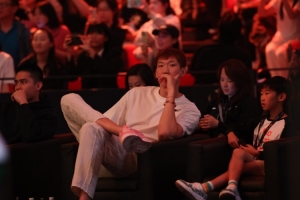 VIP!今天WTT中國(guó)大滿貫繼續(xù)在北京首鋼園進(jìn)行,北京男籃球員周琦與陳盈駿來(lái)到現(xiàn)場(chǎng)觀看王楚欽林詩(shī)棟對(duì)陣瑞典組合的男雙比賽!