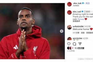 此役伊薩克首發出戰,上演利物浦首秀,賽后他在社交媒體上寫道:“在美妙的夜晚迎來我的首秀,感謝紅軍球迷們的熱情歡迎!ynwa??”