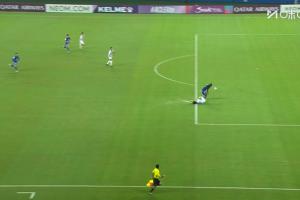 起身暴怒!阿蘇埃搶出單刀禁區內被絆倒,裁判未判給申花點球
